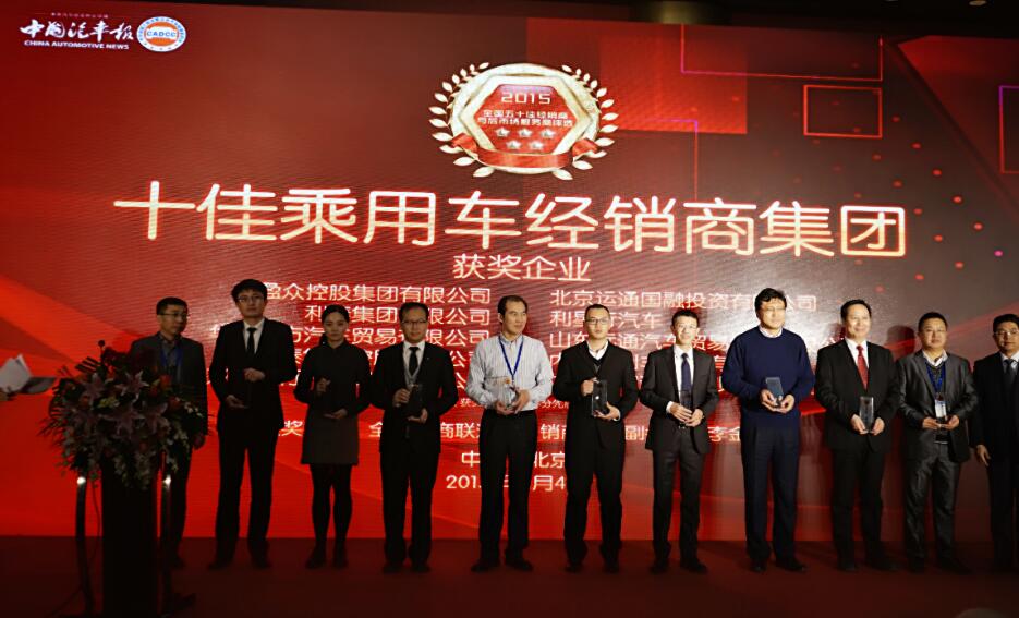 十二度斗轉星移問汽車流通誰是真英雄,五十佳春華秋實有轉型創新我當基業青。12月4日,由《中國汽車報》社有限公司主辦、中華全國工商業聯合會汽車經銷商商會協辦的“2015全國五十佳經銷商與后市場服務商”頒獎典禮在北京舉行。盈眾控股集團有限公司再次榮獲“十佳乘用車經銷商集團”榮譽。