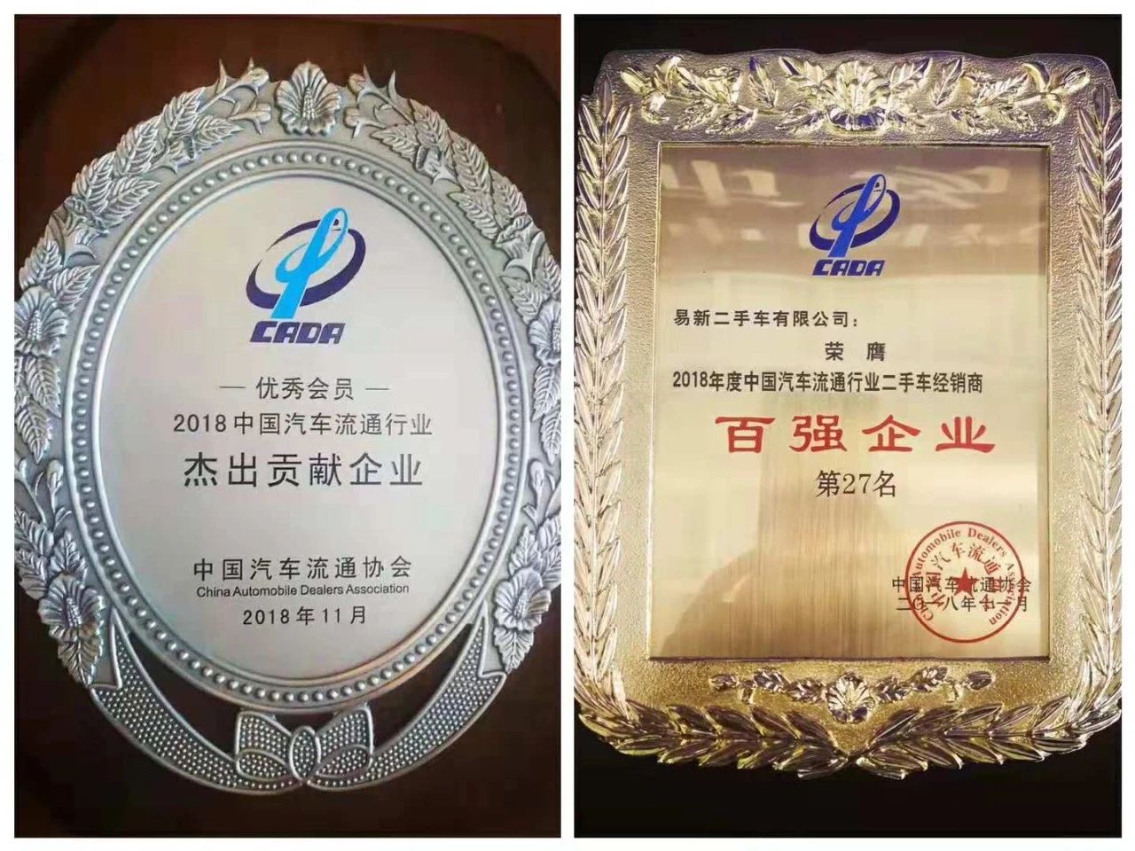 盈眾汽車(chē)集團(tuán)榮獲2018中國(guó)汽車(chē)流通行業(yè)杰出貢獻(xiàn)獎(jiǎng);易新二手車(chē)榮膺2018年度中國(guó)汽車(chē)流通協(xié)會(huì)二手車(chē)經(jīng)銷(xiāo)商百?gòu)?qiáng)企業(yè)第27名。