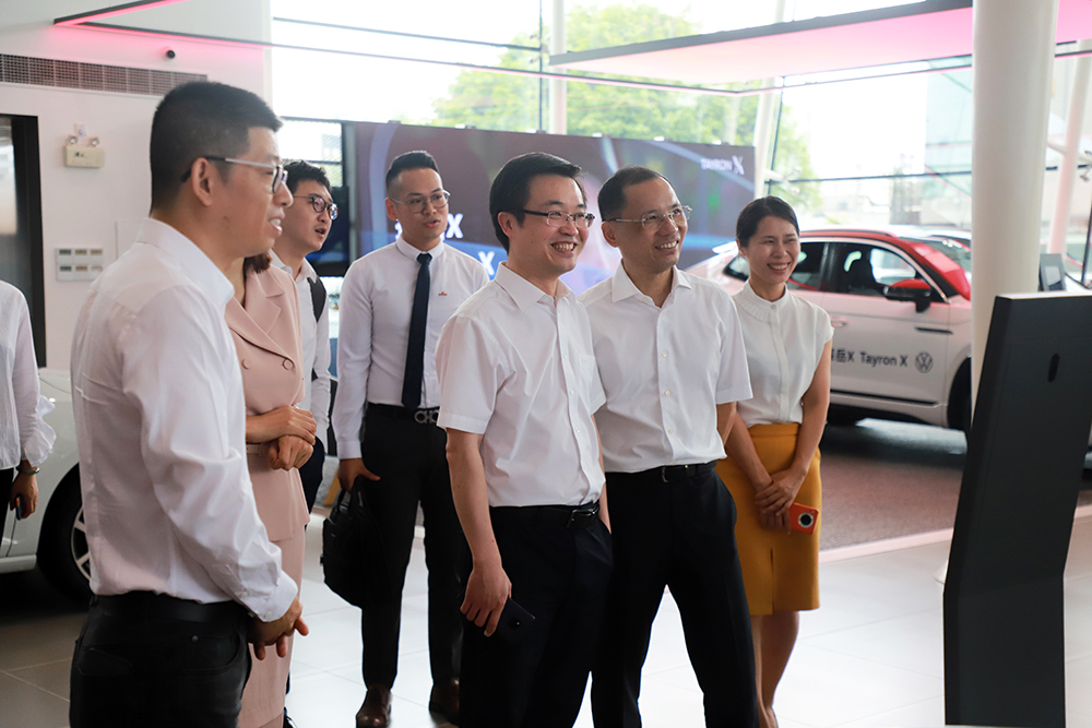 8月19日-20日,一汽-大眾銷售公司副總經(jīng)理聶強、華南區(qū)事業(yè)部總經(jīng)理竇繪娟、華南區(qū)事業(yè)部銷售總監(jiān)謝元凱等領導蒞臨盈眾集團進行走訪指導工作。盈眾控股集團董事長張桂陽、副總裁陳偉敏、一汽-大眾品牌總監(jiān)肖先明等領導陪同參觀與交流。