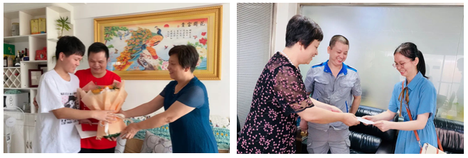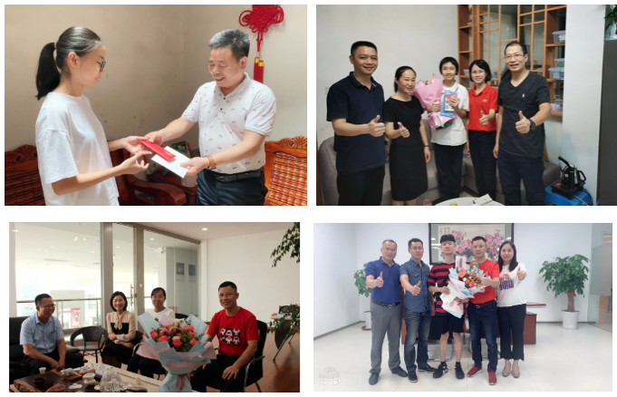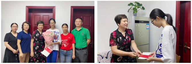 集團黨委書記鄭藝紅等領導來到員工家中,代表集團張桂陽董事長和公司向員工其及子女表示熱烈的祝賀和衷心的祝福,并送上盈眾基金會精心準備的獎學金、禮品和鮮花。同時送達的,還有公司給員工子女的一封信,信中對他們金榜題名表示熱烈祝賀,同時深情寄語,期望學子們帶著期待與憧憬,在全新跑道上,更好地照顧自己、更好地自我管理,鍛煉身體、學習知識、體驗生活、不斷成長,在追求理想的道路上實現人生的目標與價值。