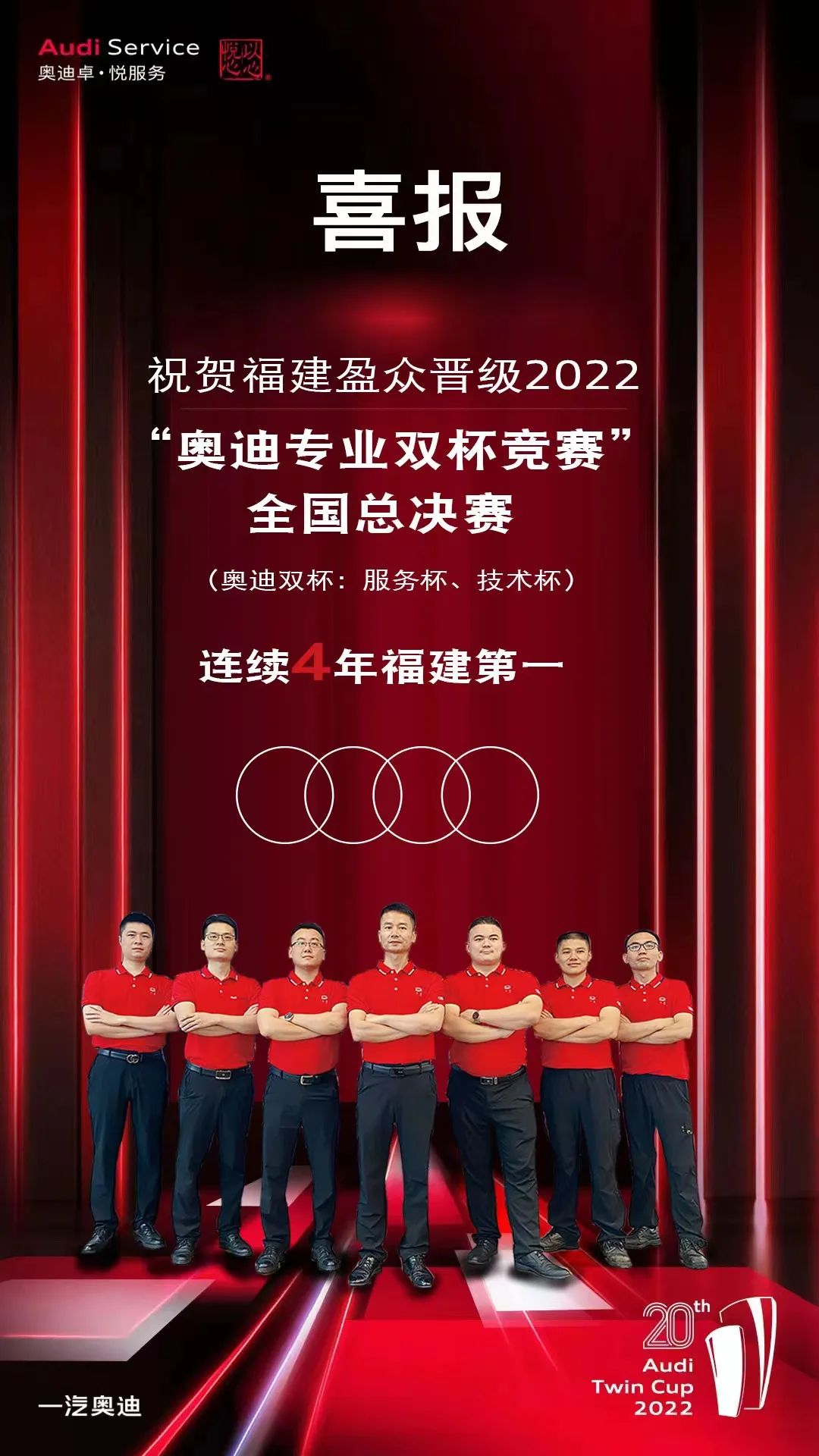 11月7日,在2022奧迪專業雙杯競賽東南區決賽中,福建盈眾奧迪再次以全省第1名的成績,成為福建省唯一晉級全國總決賽的團隊。