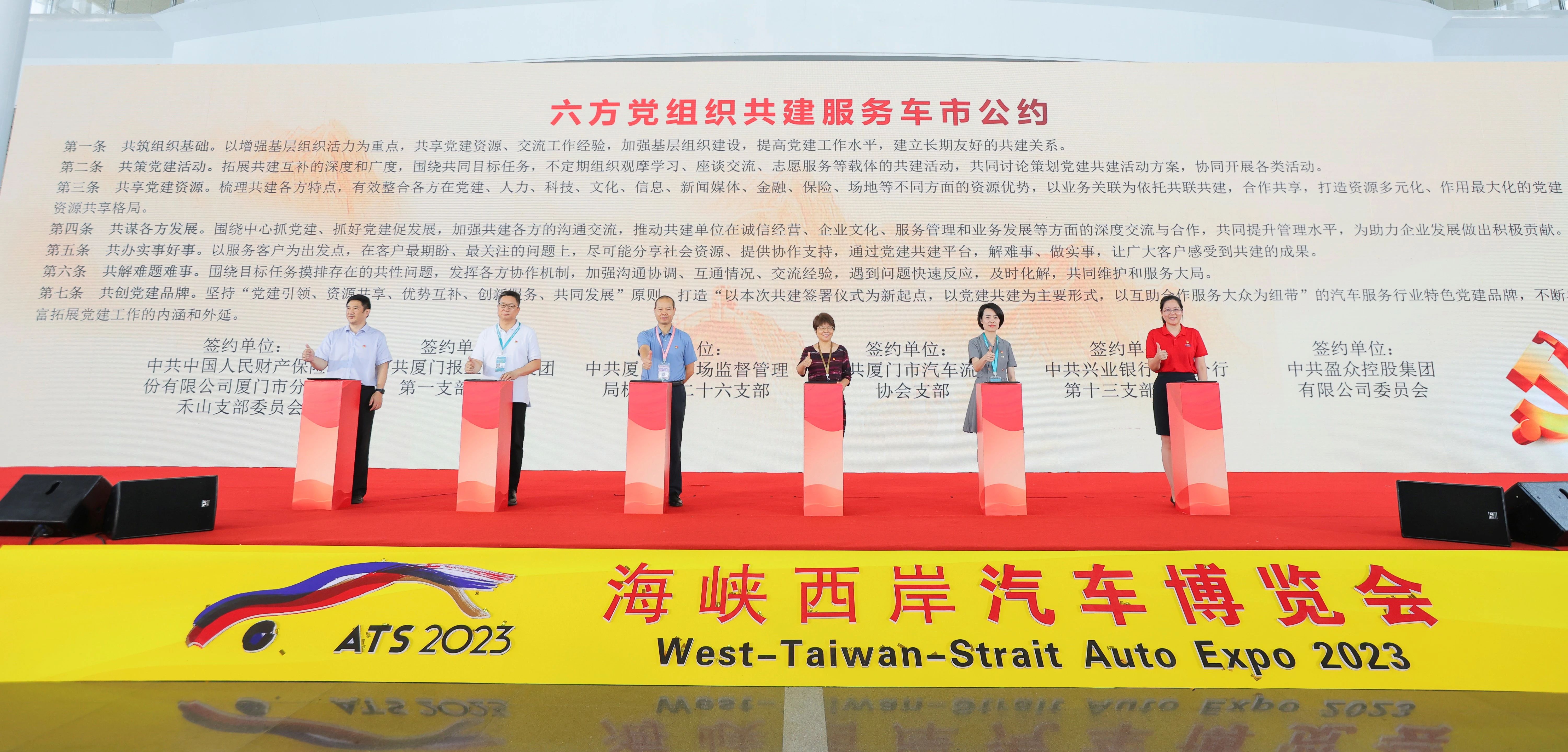 7月1日,“黨建引領 誠信至上 創新服務 共建共贏”海西車市六方黨組織共建活動在廈門國際會展中心“2023海峽西岸汽車博覽會”現場舉行。各共建單位黨員代表到場參與活動,眾多領導嘉賓、媒體同仁和汽車行業人士共同見證。