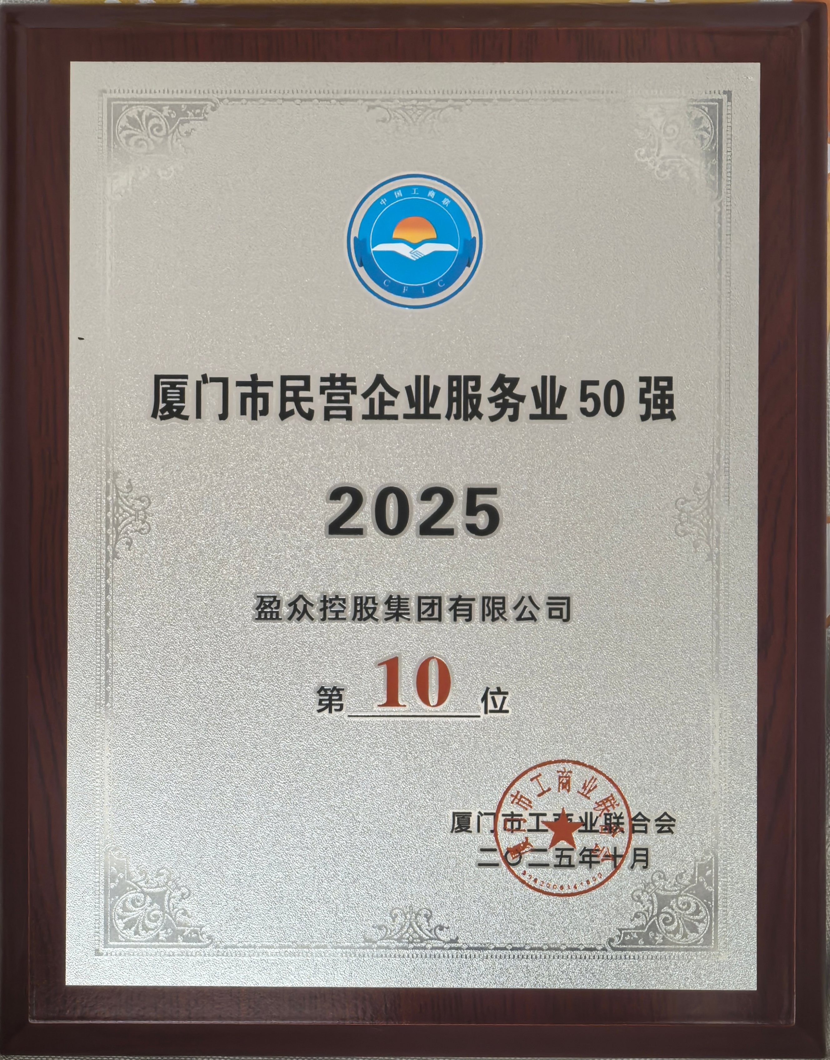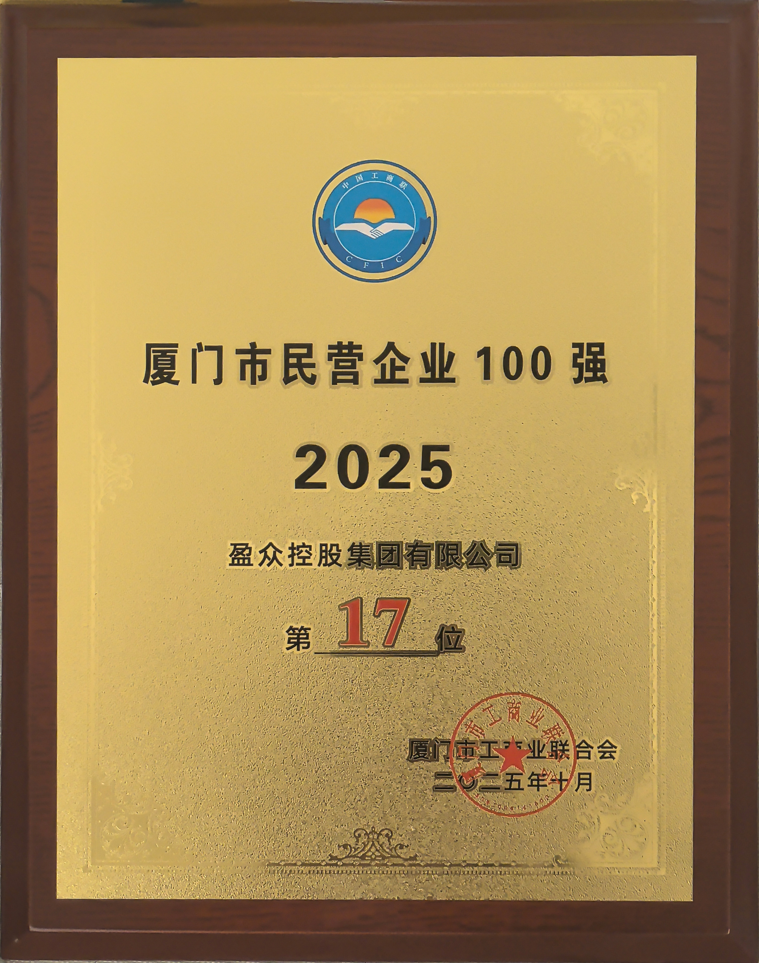 近日,2025年主題為“建言‘十五五’ 民企勇擔當”的廈門企業家日大會召開。會上,2025廈門市民營企業100強系列榜單發布,盈眾控股集團憑借各項綜合實力,獲選2025廈門市民營企業100強第17位、2025廈門市民營企業服務業50強第10位。